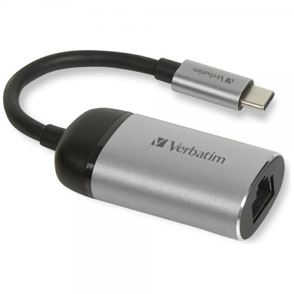 Adaptor de retea extern Verbatim, USB-C la RJ45, Viteza de pana la 1000 Mbps, Negru / Argintiu