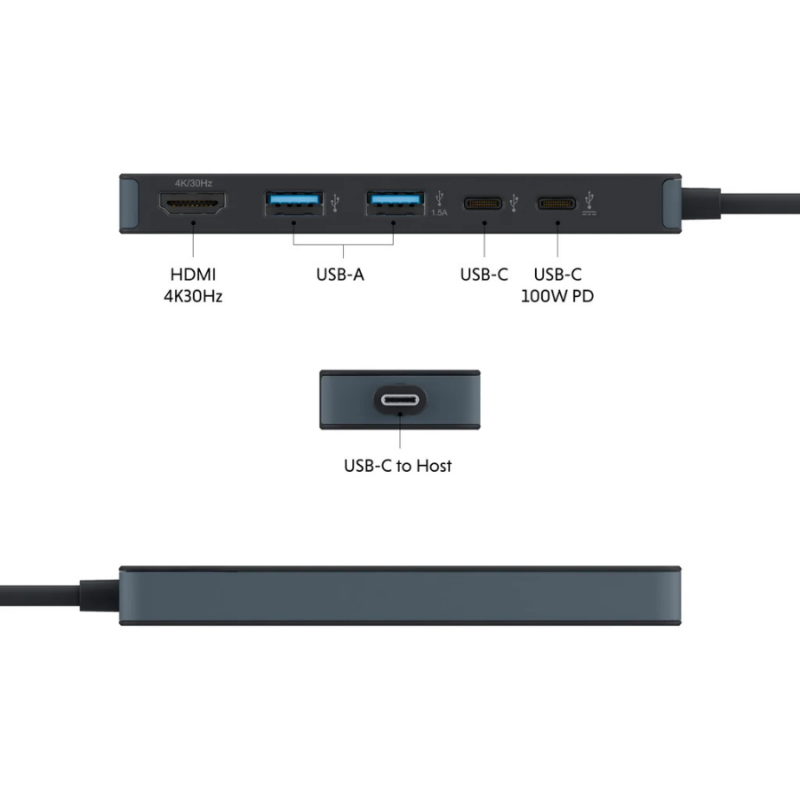 Adaptor Hub 5-in-1 Hyper HyperDrive Flex, 1x USB-C PD 100W, 1x USB-C 5 Gb/s, 2x USB-A 5 Gb/s, 1x HDMI 4k / 30Hz, Negru Cod produs: HYP-181803