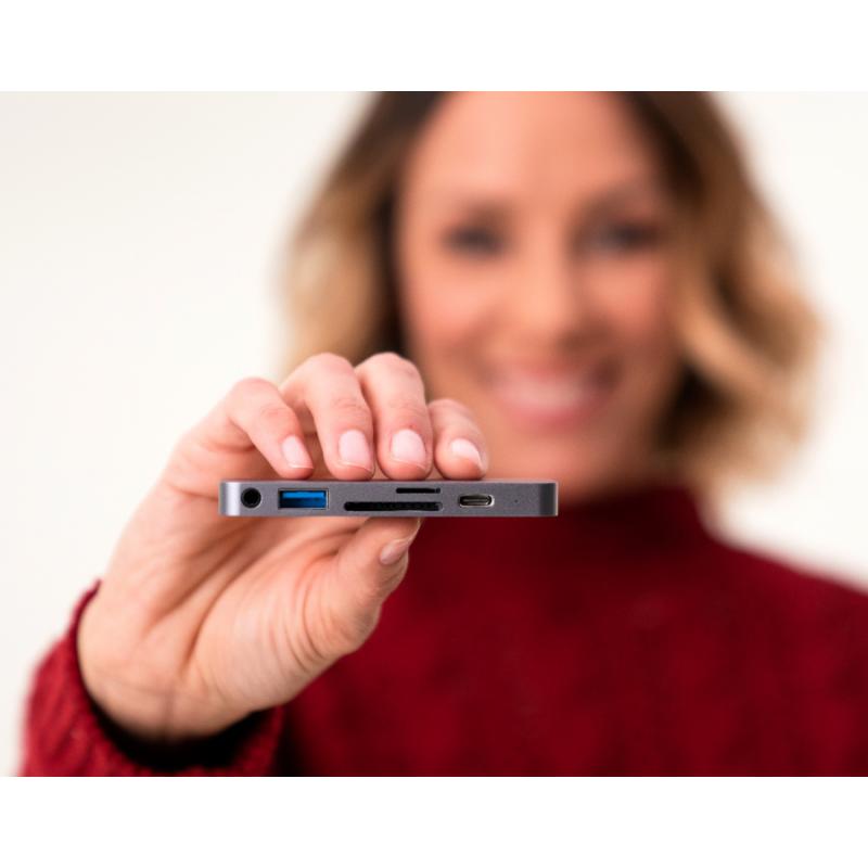 Adaptor HUB 6-in-1 Hyper HyperDrive, USB-C la 1x USB-C, 1x HDMI, 1x USB-A, 1x SD, 1x MicroSD, 1x Jack 3.5mm, Space Gray