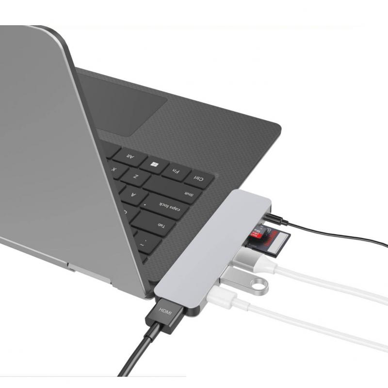 Adaptor HUB 8-in-1 Hyper HyperDrive SOLO, USB-C la 1x USB-C, 1x HDMI, 2x USB-A, 1x SD, 1x MicroSD, 1x Jack 3.5mm, 1x Conector Jack, Silver