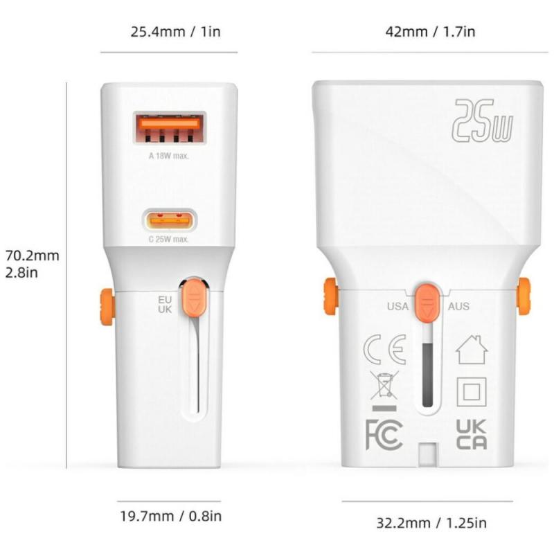 Adaptor retea 4smarts World Travel Adapter Nomad Pocket, 1x USB-C, 1xUSB-A, 25W, 3A, Alb Cod produs: 4SM-159654