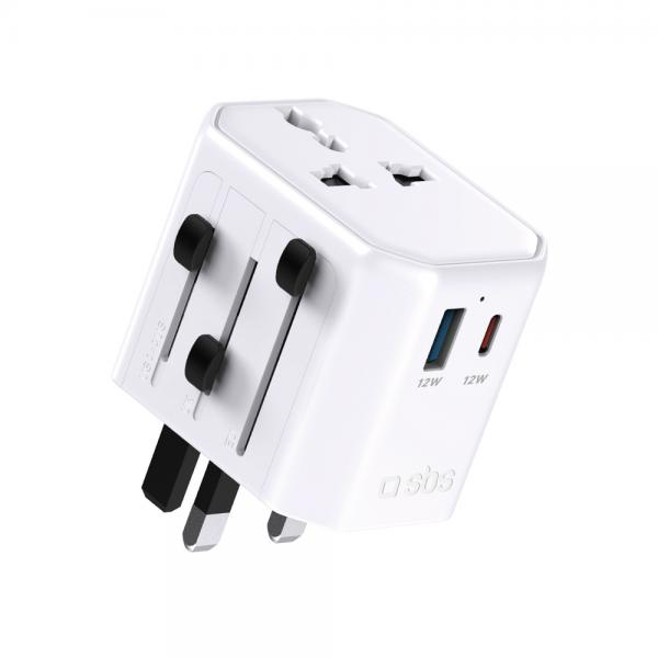 Adaptor retea SBS TEADAPTUSBTCUNI, 1x USB-A, 1x USB-C, 20W, Compatibil cu prize EU/UK/US/AU, Alb Cod produs: SBS-158996