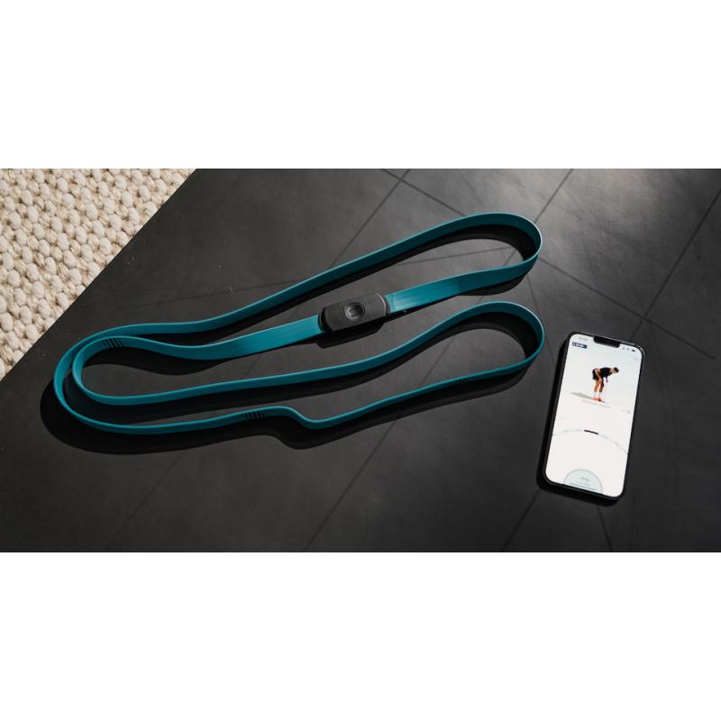 Banda elastica smart STRAFFR Medium, Lungime 2m, Rezistenta 5-15kg, Baterie reincarcabila USB-C, Conectare Bluetooth la aplicatia STRAFFR, Silicon, Cyan Cod produs: STR-183914