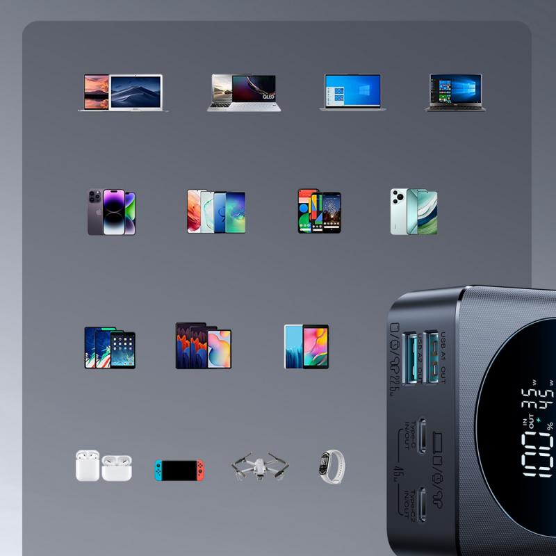 Oferă flexibilitate pentru încărcarea atât a dispozitivelor, cât și a bateriei externe.