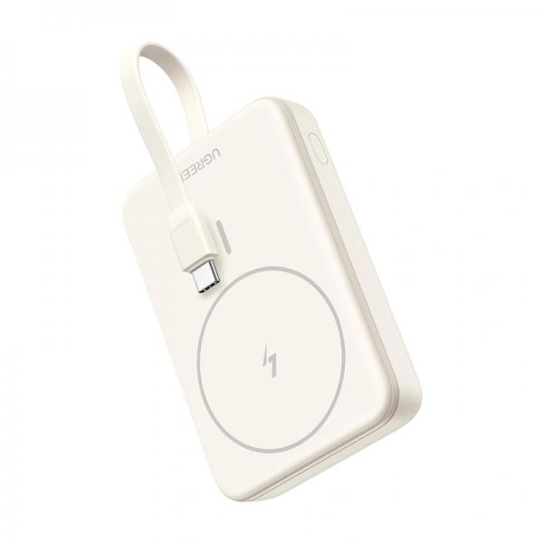 Baterie externa magnetica UGREEN PB760, 10000 mAh, PD 20W, Incarcare Wireless 15W, USB-C, Cablu USB-C incorporat, Bej