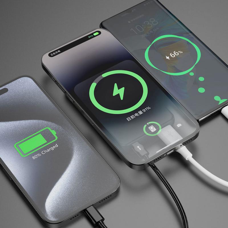 Power bank-ul permite încărcarea simultană prin cablu și wireless, ceea ce îl face util în situații în care este nevoie de alimentarea rapidă a mai multor dispozitive.