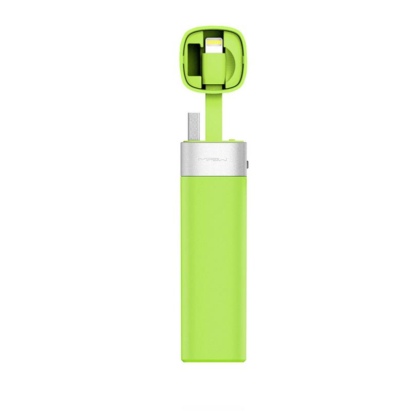 Baterie externa MiPow Power Tube 3000mAh, Incarcare prin USB-A integrat, Cablu Lightning pentru incarcarea dispozitivelor, Verde