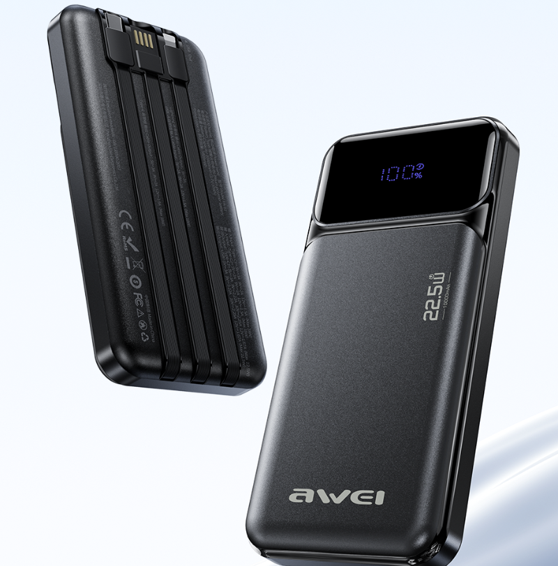 AWEI PA-91 cu o capacitate de 10.000 mAh este un powerbank practic care permite încărcarea rapidă a smartphone-urilor, tabletelor și altor dispozitive mobile în deplasare. Echipat cu un display digital care arată nivelul de încărcare și un cablu încorporat, suportă încărcarea rapidă de 22,5W și permite alimentarea a până la patru dispozitive simultan.