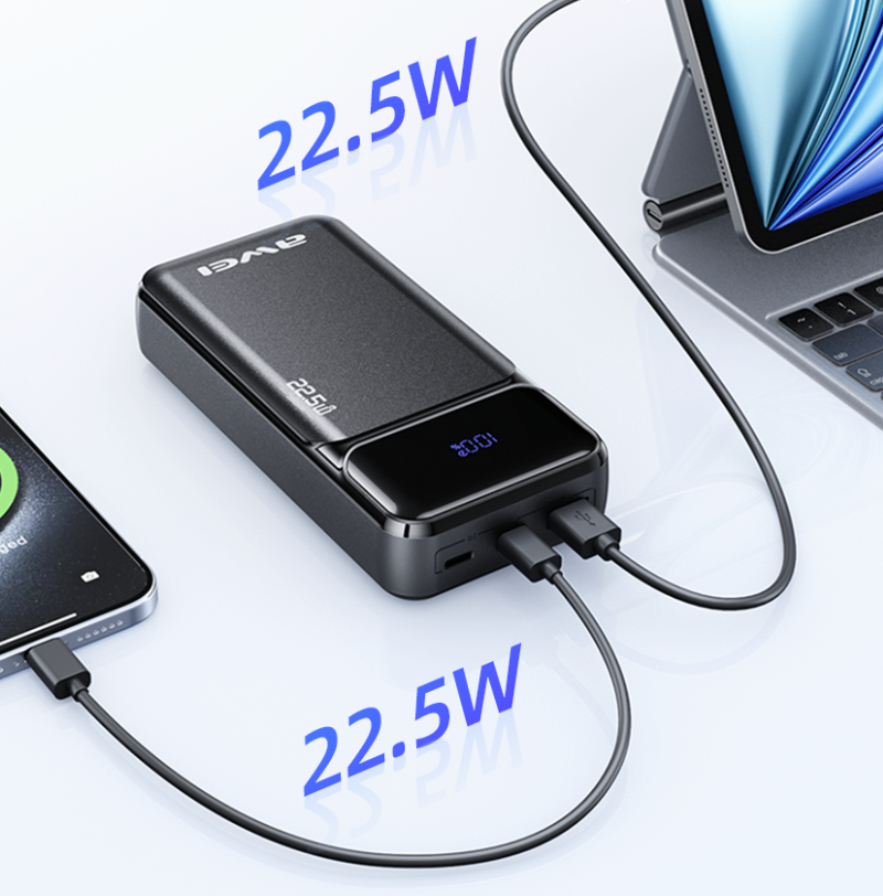 AWEI PA-92 cu o capacitate de 20.000 mAh este un power bank practic care permite încărcarea rapidă a smartphone-urilor, tabletelor și a altor dispozitive mobile în deplasare. Echipat cu un afișaj digital care arată nivelul de încărcare, suportă încărcare rapidă de 22,5W și vă permite să alimentați două dispozitive simultan.