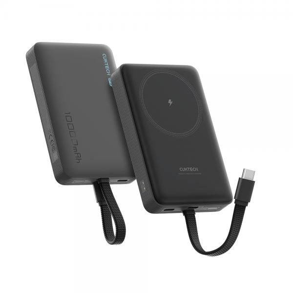 Baterie externa portabila Cuktech CP132ML, 10000 mAh, 22.5W, 1x USB-C, 1x Cablu USB-C, Incarcare Wireless 7.5W, Negru