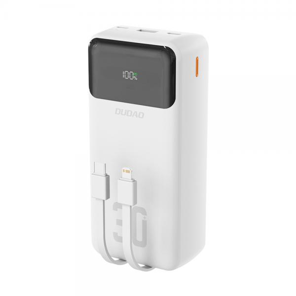 Baterie externa portabila Dudao K15Max, 30000 mAh, 22.5W, 2A, 1x USB-A, 1x Cablu USB-C, 1x Cablu Lightning, Alb Cod produs: DUD-179041
