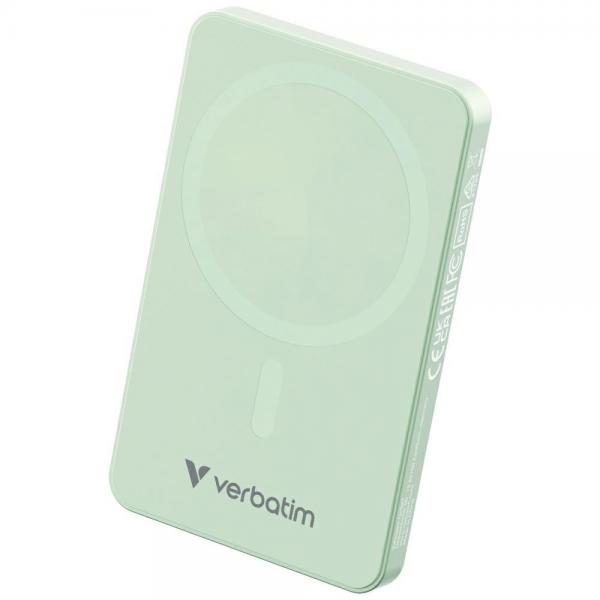 Baterie externa portabila Verbatim n Go Essentials, 5000 mAh, PD 20W, Incarcare Wireless, USB-C, Verde