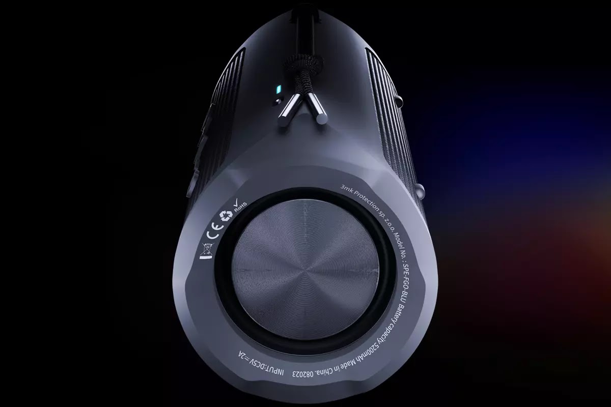 Pregătește-te pentru o revoluție sonoră cu noua boxă wireless Fuego de la 3mk Protection! Fuego garantează calitate și intensitate sonoră fără compromisuri, iar soluțiile inovatoare asigură o conexiune fiabilă a dispozitivului, protecție împotriva vărsărilor, capacitate uimitoare a bateriei și capacitatea de a crea un câmp sonor.
