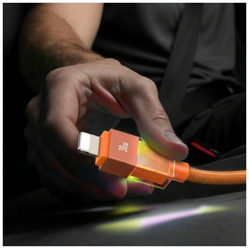 The USAMS U93 cable is a modern and stylish accessory designed for users of Apple devices equipped with a Lightning connector. The combination of a USB-C port and a Lightning connector ensures full compatibility with iPhones, iPads, and other Apple devices, as well as with modern wall chargers, car chargers, and power banks that support USB-C. The vibrant orange color gives the cable a dynamic, modern character and makes it easy to find among other accessories.