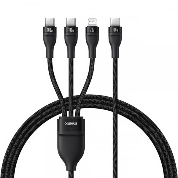 Cablu Baseus Flash Series 3, USB-C la 2xUSB-C,1xLightning, 100W, 3.5A, 480Mbps, 1.5m, Negru
