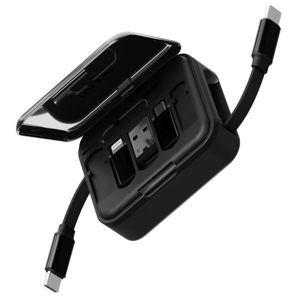 Loop este un set compact 5-in-1 care combină funcționalitatea unui cablu de alimentare și adaptoare. Suportă încărcarea rapidă de până la 60 W cu tehnologia Power Delivery, făcându-l potrivit atât pentru smartphone-uri, cât și pentru laptopuri. Cablu este conceput ca o casetă retractabilă cu dimensiunile de 68 × 57 × 23 mm și cântărește doar 65 g, astfel încât se potrivește ușor într-un buzunar sau rucsac. Este o soluție practică pentru persoanele care călătoresc frecvent și au nevoie de un accesoriu fiabil în loc de mai multe cabluri și adaptoare separate.