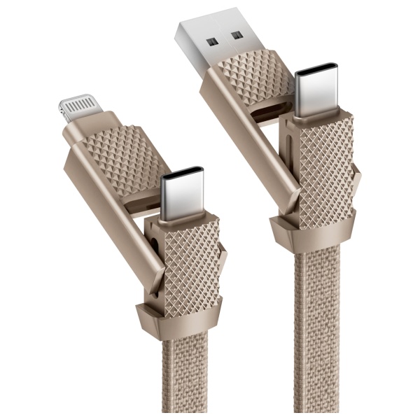 Cablu pentru incarcare si transfer de date ENERGEA Bazic GoCharge Alucable 4 in 1, USB-A / USB-C la USB-C / Lightning, 60W, 480Mbps, 15cm, Gold Cod produs: ENE-165999