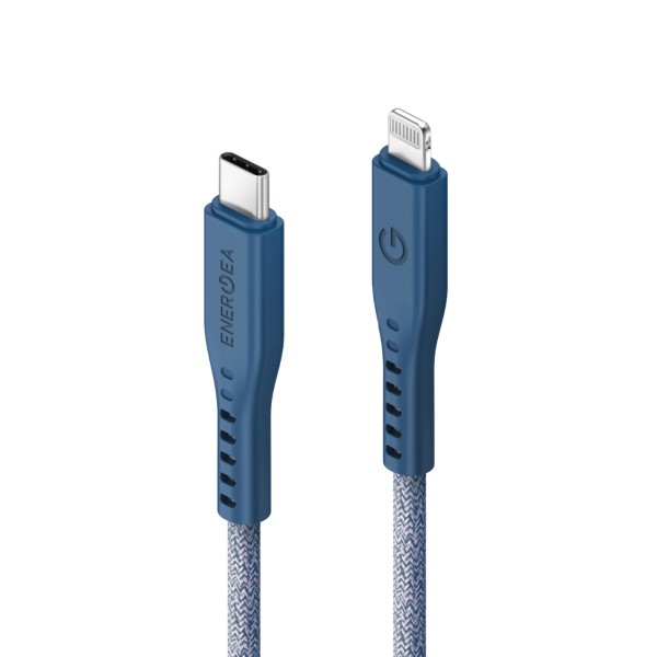 Cablu pentru incarcare si transfer de date ENERGEA Flow C94, USB-C la Lightning, 60W, 3A, 480Mbps, 1.5m, Albastru