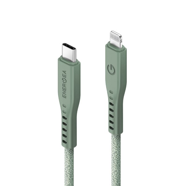 Cablu pentru incarcare si transfer de date ENERGEA Flow C94, USB-C la Lightning, 60W, 3A, 480Mbps, 1.5m, Verde