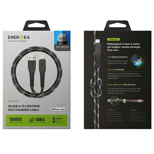 Cablul Nyloflex este cel mai recent produs oferit de renumita și respectata marcă de accesorii GSM la nivel mondial - Energea. Acest cablu se remarcă prin măiestria sa precisă, asigurând o utilizare de lungă durată și fiabilitate. Cablul este realizat din fire de cupru de înaltă calitate și o împletitură robustă din nylon, făcându-l flexibil și rezistent la deteriorare. Designul cablului a fost special întărit pentru a-i crește durabilitatea împotriva îndoiturilor. Datorită flexibilității sale, cablul poate fi transportat și depozitat cu ușurință, fără îngrijorarea deteriorării.