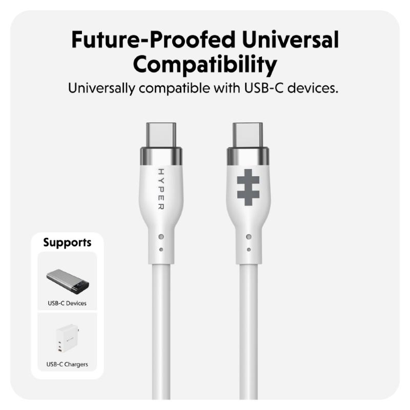 Cablu pentru incarcare si transfer de date HyperJuice, USB-C la USB-C, 240W, 480 Mbps, 1m, Alb