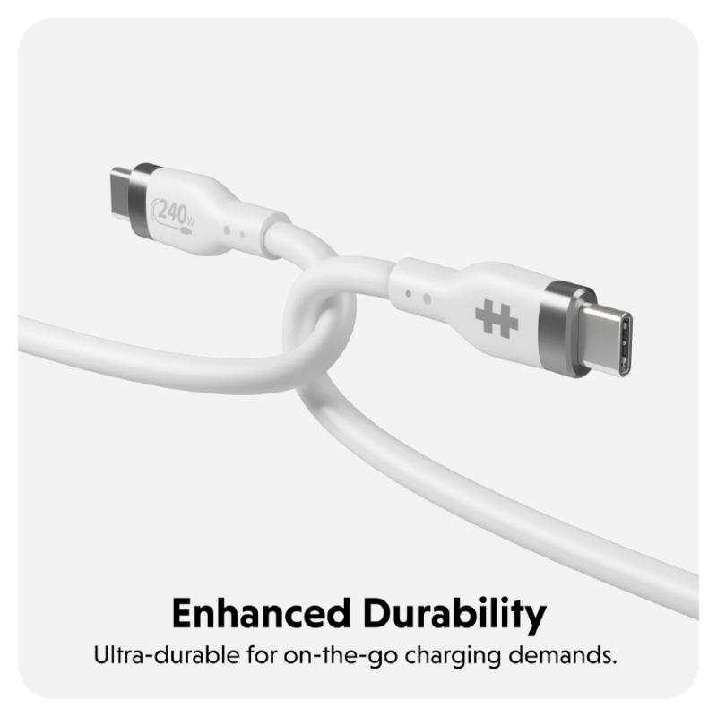 Cablu pentru incarcare si transfer de date HyperJuice, USB-C la USB-C, 240W, 480 Mbps, 1m, Alb Cod produs: HYP-181264