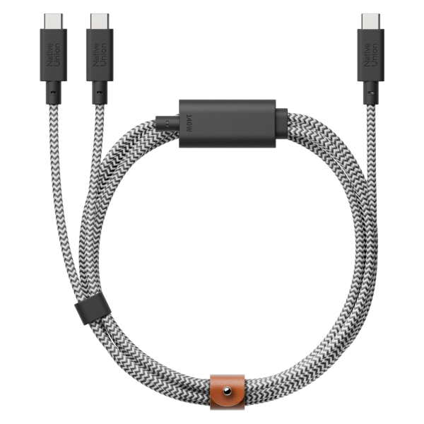 Cablu pentru incarcare si transfer de date Native Union Belt 2-in-1, USB-C la 2x USB-C, 140W, 480Mbps, 2m, Zebra Cod produs: NAT-179309