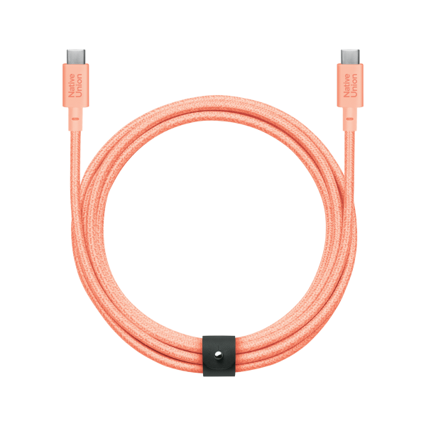 Cablu pentru incarcare si transfer de date Native Union Belt XL, 2x USB-C, 100W, 480Mbps, 3m, Apricot Cod produs: NAT-179302