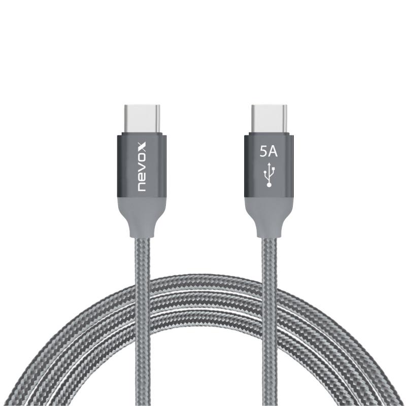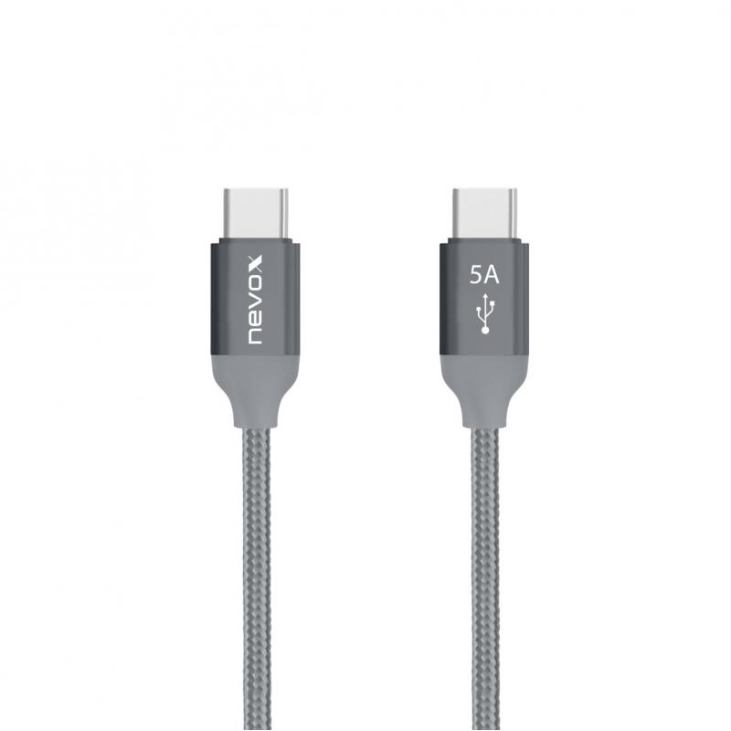 Cablu pentru incarcare si transfer de date Nevox, 2x USB-C, 100W, 5A, 1m, Gri