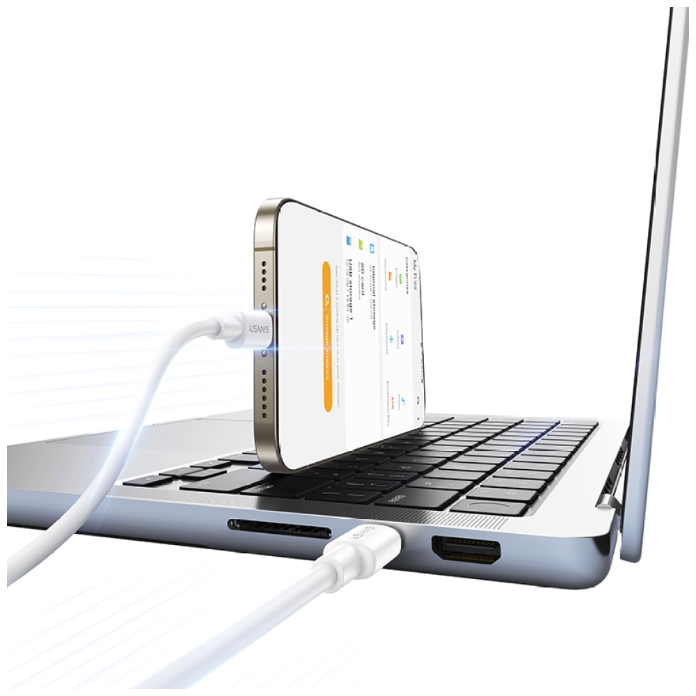 Cablu pentru incarcare si transfer de date USAMS U90, 2x USB-C, 60W, 3A, 480Mbps, 1m, Alb