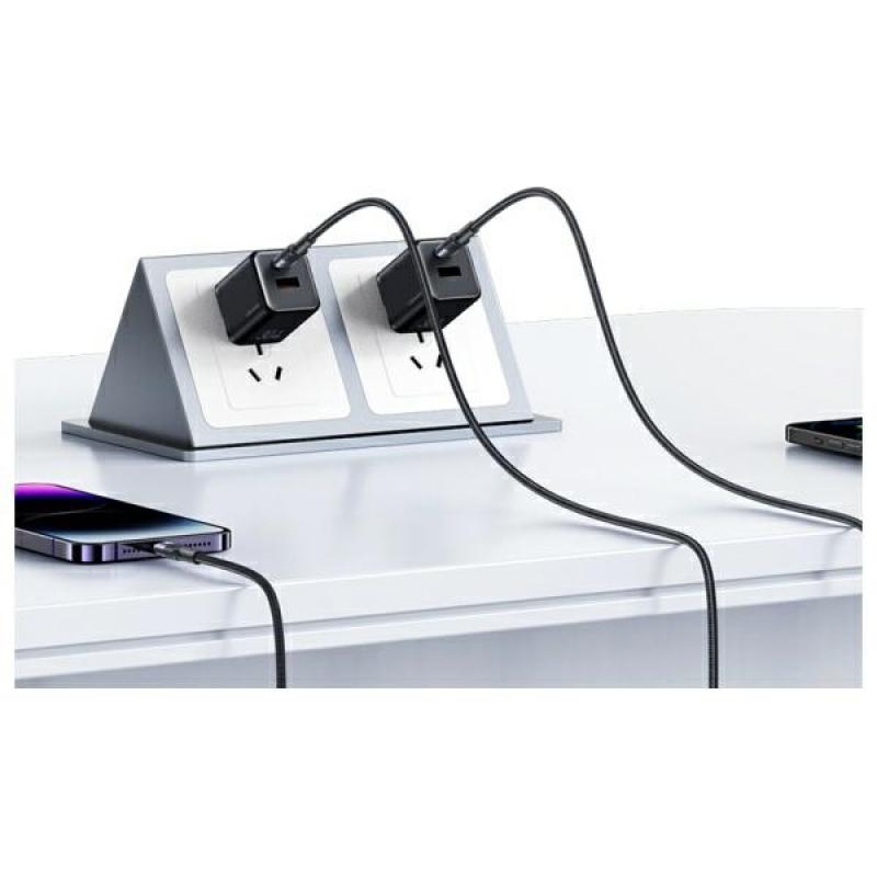 Cablu de încărcare rapidă și transfer de date de 30W. Cablu împletit din nailon cu mânere lungi pentru conectorii USB-A/Lightning. Are o rezistență mare la îndoire. Suportă protocoale de încărcare rapidă pentru iPhone 14 Pro. Viteză de transfer de date: 480 Mbps.
