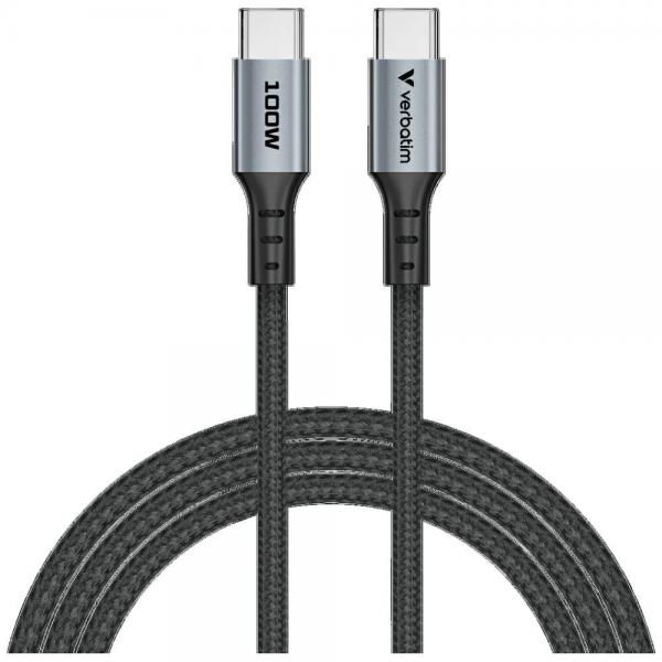 Cablu pentru incarcare si transfer de date Verbatim Sync & Charge, 2x USB-C, 100W, 480Mbps, 1.2m, Negru
