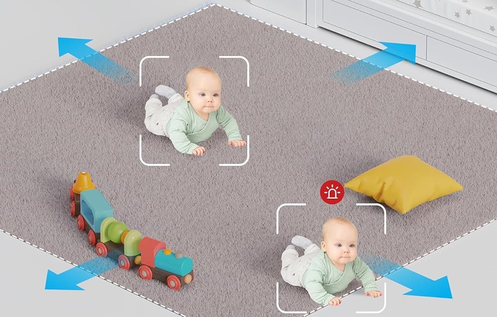 Funcția de urmărire a obiectelor face ca camera să urmărească automat mișcarea bebelușului, ajustând unghiul camerei. Astfel, camera asigură o supraveghere completă și este ideală pentru supravegherea copiilor mici activi. În plus, funcția BabySafe Zone vă permite să configurați o zonă AI virtuală care trimite alerte atunci când un copil părăsește zona de siguranță.