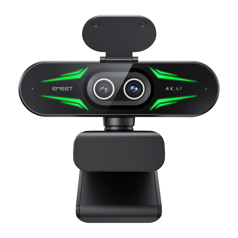 EMEET SmartCam C60E 4K Dual este o cameră web dotată cu două obiective – unul cu unghi larg și unul teleobiectiv – care îți permit să modifici cu ușurință cadrul fără a fi nevoie să repoziționezi dispozitivul. Oferă video 4K la 30 fps și 1080p la 60 fps, autofocus rapid PDAF și zoom hibrid 11x. Datorită portului USB-C, adaptorului USB-A inclus și funcționalității plug-and-play, este gata de utilizare imediat după conectare, fiind ușor de folosit atât pentru întâlniri online, cât și pentru înregistrări și transmisiuni live.