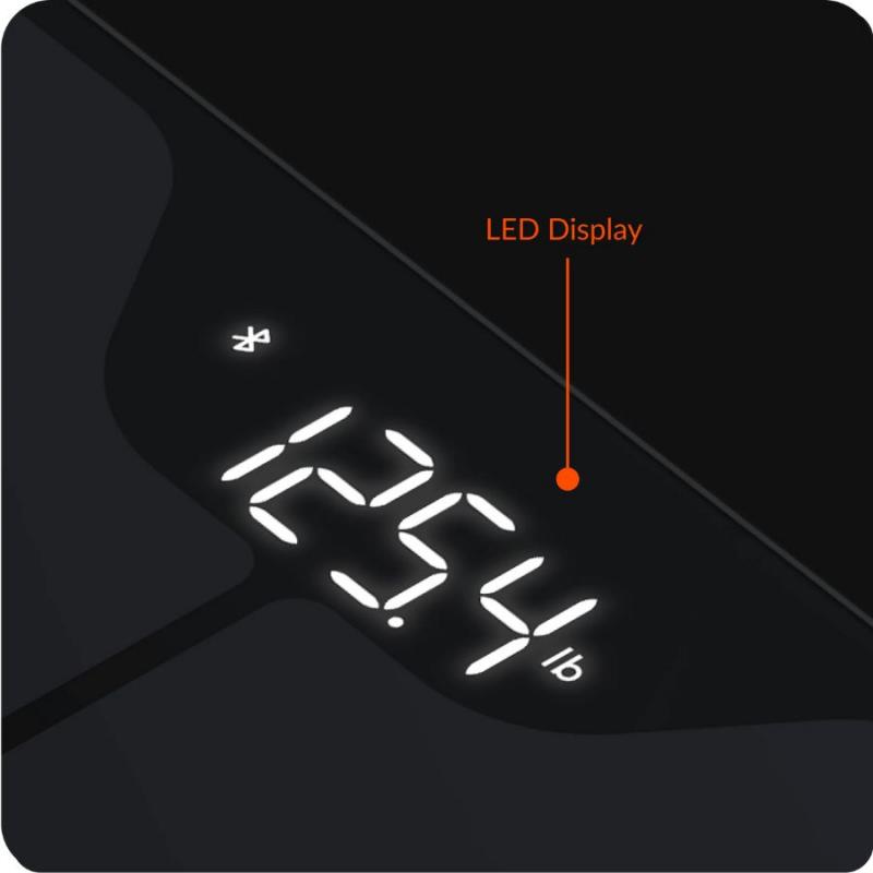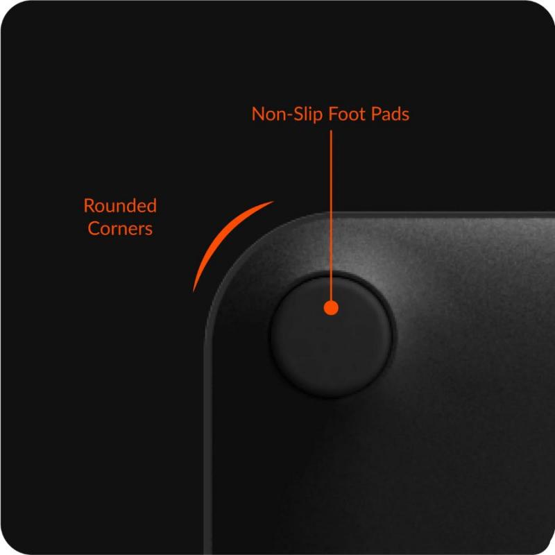 Cântarul inteligent impresionează prin designul elegant, de culoare neagră cu reflexe metalice albastre. Colțurile rotunjite și piciorușele anti-alunecare oferă stabilitate și siguranță.