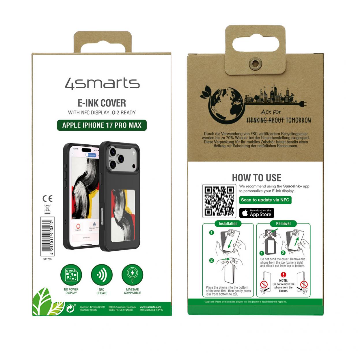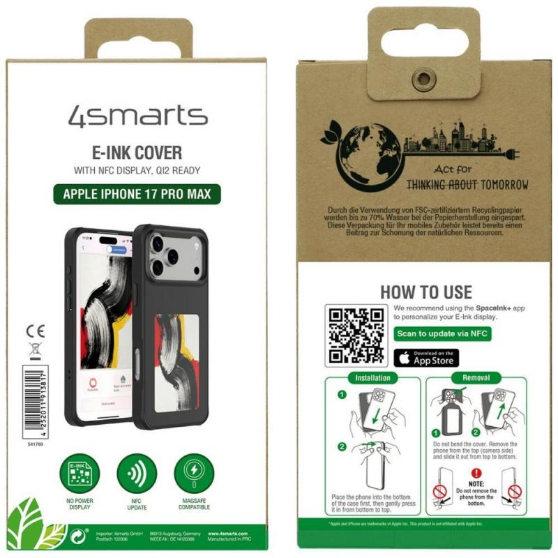 Carcasa 4smarts E-Ink cu MagSafe compatibila cu iPhone 17 Pro Max, Negru