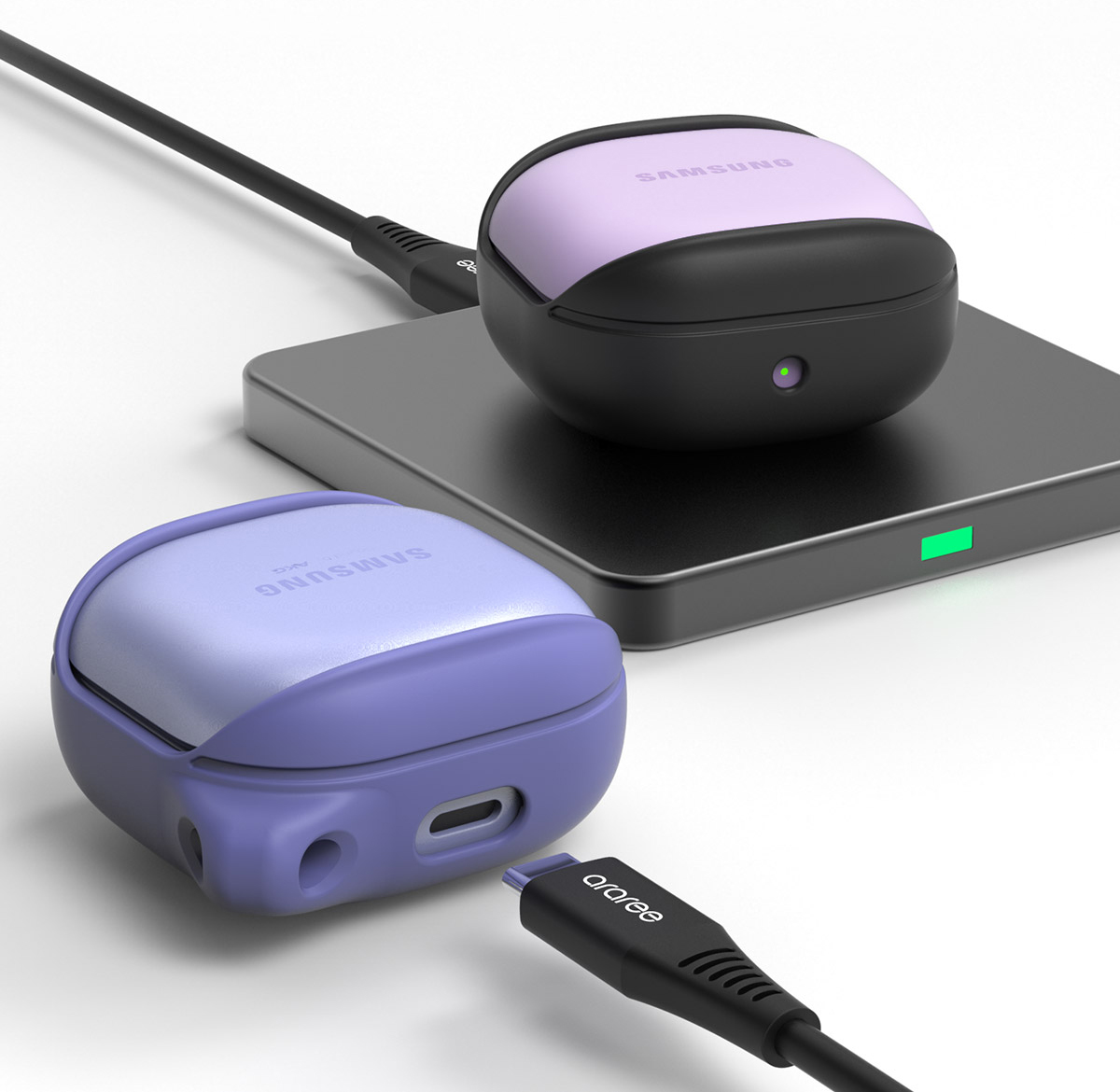 Araree este partener oficial Samsung. Am început să dezvoltăm accesoriile noastre simultan cu Galaxy Buds FE, ceea ce asigură o compatibilitate excelentă.