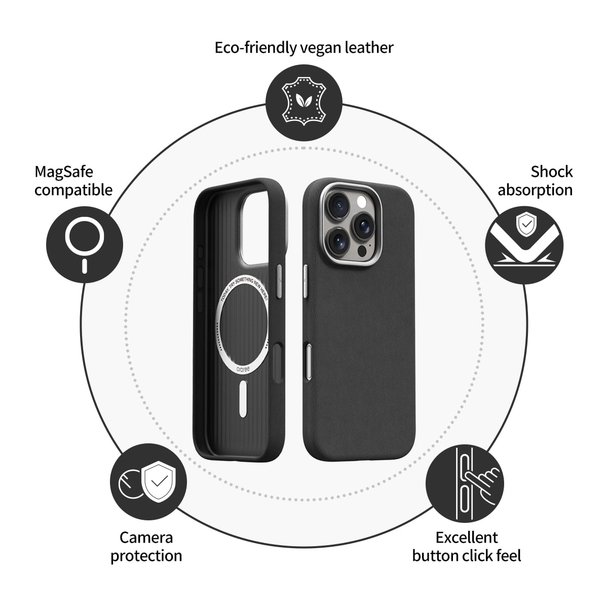 Araree Pellis include un magnet puternic N52 din neodim, făcând încărcătoarele și accesoriile MagSafe mai ușor de utilizat.