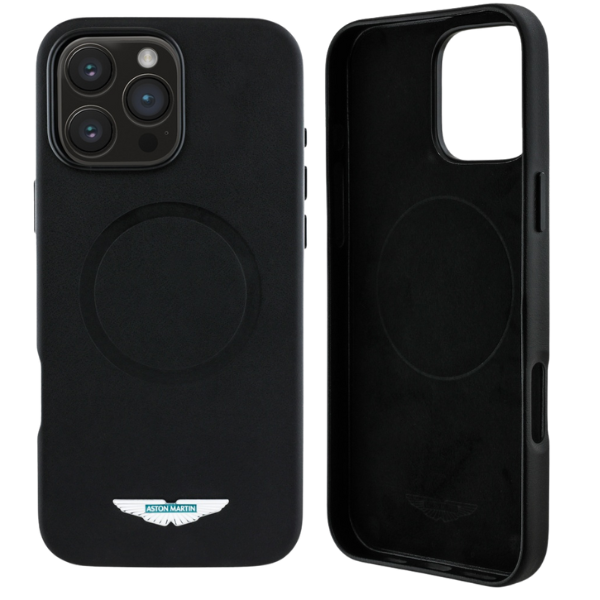 Carcasa Aston Martin HC FW Logo cu MagSafe compatibila cu iPhone 16 Pro Max, Negru