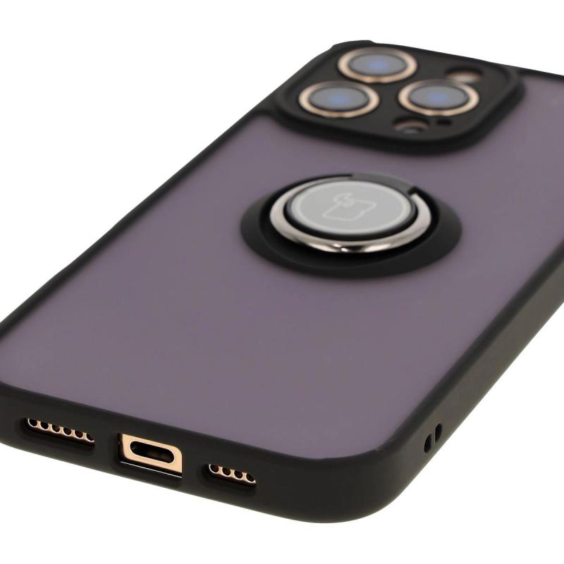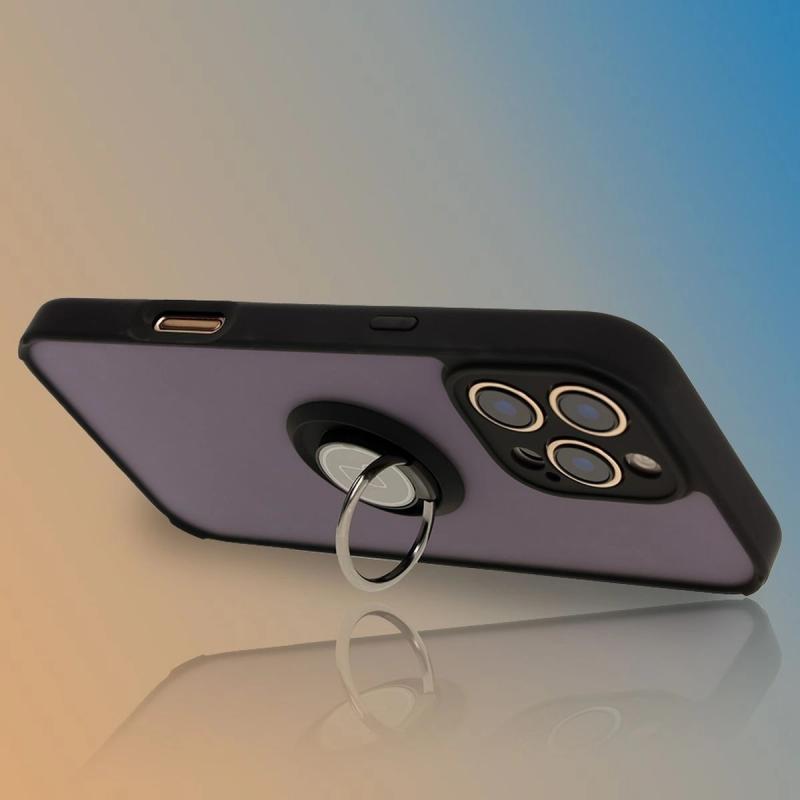 Carcasa Bizon Hybrid Ring compatibila cu iPhone 16 Pro Max, Transparent / Negru Cod produs: BIZ-182068