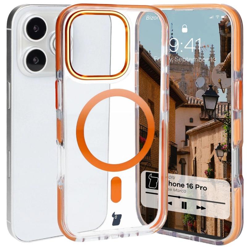 Carcasa Bizon Marco compatibila cu iPhone 16 Pro, Transparent / Portocaliu Cod produs: BIZ-182840
