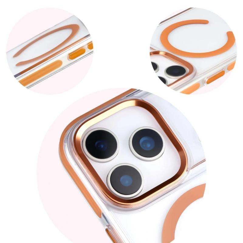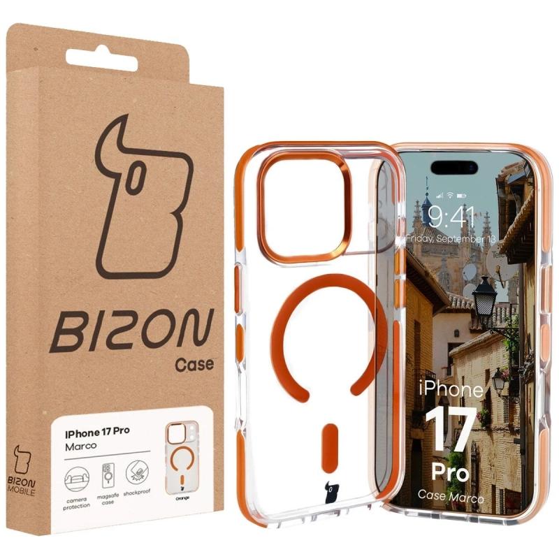 Carcasa Bizon Marco cu MagSafe compatibila cu iPhone 17 Pro, Transparent / Portocaliu Cod produs: BIZ-181927