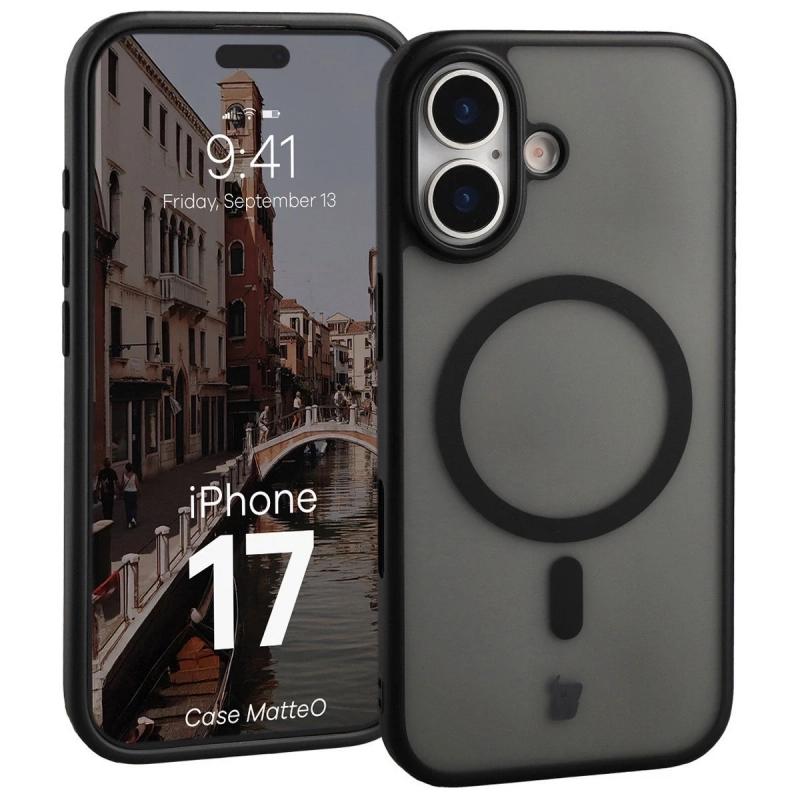 Carcasa Bizon MatteO cu MagSafe compatibila cu iPhone 17, Negru