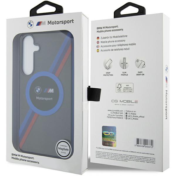 Caracteristica definitorie a acestor carcase este designul unic, foarte modern, combinat cu un accent puternic pe funcționalitate. Fiecare carcasă din această colecție este decorată cu dungi orizontale în culorile clasice ale Motorsport BMW, iar un mare cerc negru ascunde inteligent inelul MagSafe. În interiorul cercului, vei găsi logo-urile BMW și Motorsport, care confirmă calitatea și autenticitatea ridicată a produsului. Grafica este aplicată pe carcasă folosind tehnologia IMD (In-Mould-Decoration) - presată la cald pe suprafață și apoi acoperită cu un strat subțire de TPU, făcându-le rezistente la uzură și menținându-le aspectul impecabil mai mult timp.