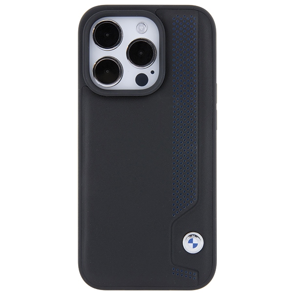 Carcasa BMW Leather Blue Dots compatibila cu iPhone 15 Pro, Negru