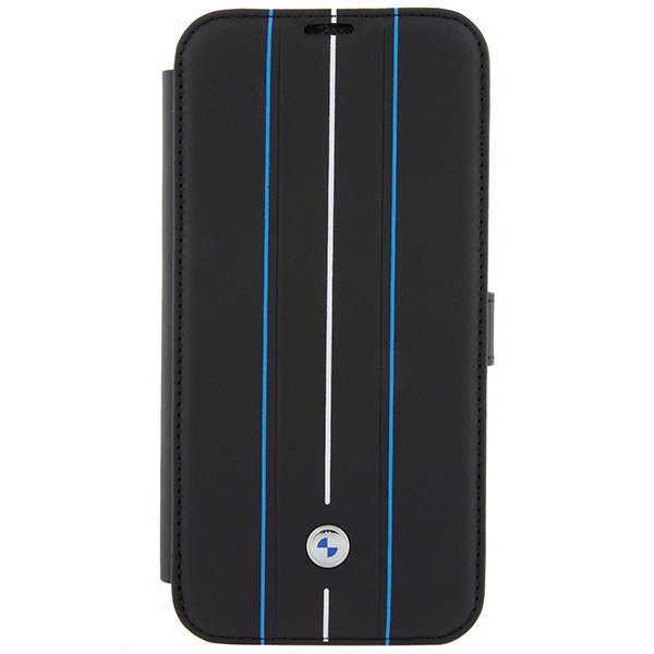 Carcasa BMW Leather Stamp Blue Lines compatibila cu iPhone 15 Pro Max, Black