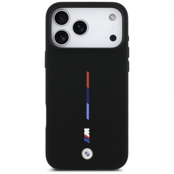 Carcasa BMW M Silicon Tricolor Line cu MagSafe compatibila cu iPhone 17 Pro Max, Negru