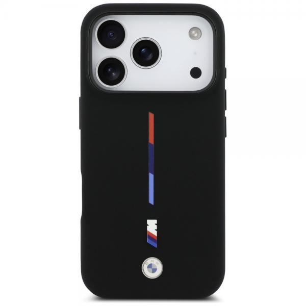 Carcasa BMW M Silicon Tricolor Line cu MagSafe compatibila cu iPhone 17 Pro, Negru