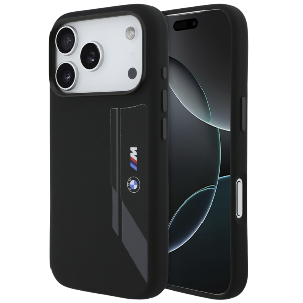 Carcasa BMW M Silicon Vertical Logo cu MagSafe compatibila cu iPhone 17 Pro, Negru