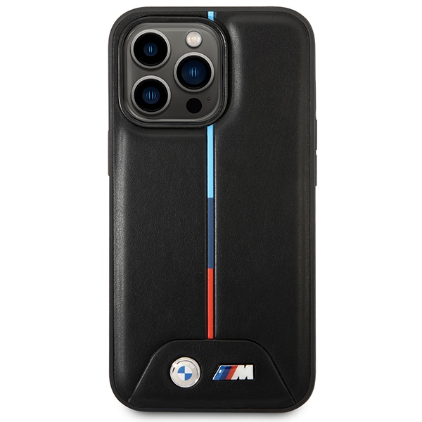 Carcasa BMW Quilted Tricolor cu MagSafe compatibila cu iPhone 14 Pro, Negru